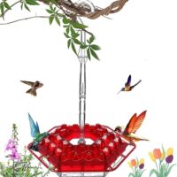 31 Inch Height Glass Birdbath Birdfeeder with Metal Stake Garden Yard Outdoor