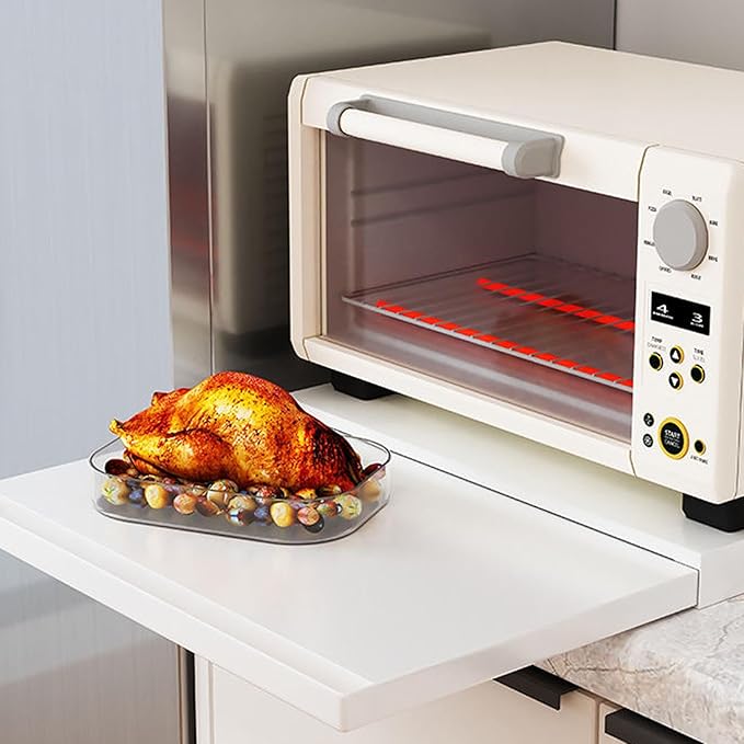 Versatile Stand for Kitchen Appliances, including Microwave, Coffee Maker, and Toaster: Designed primarily as a microwave stand for countertop, this versatile organizer also supports coffee makers, toasters, and other small kitchen appliances. This microwave stand features a minimalist and modern design, This one does not come with a drawer, while the generous size (18.5″ x 14.2″ x 1.6″) make it a perfect fit for any kitchen or coffee station. This countertop microwave stand crafted from high-quality stainless steel, this countertop microwave stand is built for longevity. Its smooth surface resists stains and is easy to clean, maintaining a pristine appearance. Compared to other stands, this microwave countertop organizer stands out with its cohesive and integrated design. transforming a chaotic countertop into a modern, cohesive space.