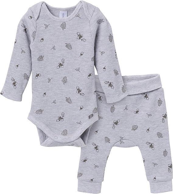 Our baby bodysuit and pants set are tailored for a warm and cozy feel on cooler days. Long sleeves and soft pants provide a comfortable fit your little one will love. To make diaper changes easy, the bodysuit features leg snaps and a lap shoulder neckline, while ribbing at the neckline and leg holes provide a comfortable fit.