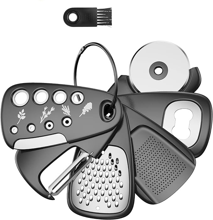 The space-saving design allows each tool to be stacked together in any order, so you can put them in a bag without worrying about losing them. The blades are made of 430 stainless steel, ensuring smooth peeling, slicing, and grating. Made with ABS plastic, they are comfortable to hold, lightweight, and easy to control. Neatly packaged in a box, this kitchen utensil set makes the ultimate gift. It’s the perfect present for moms, girlfriends, loved ones, and chefs.