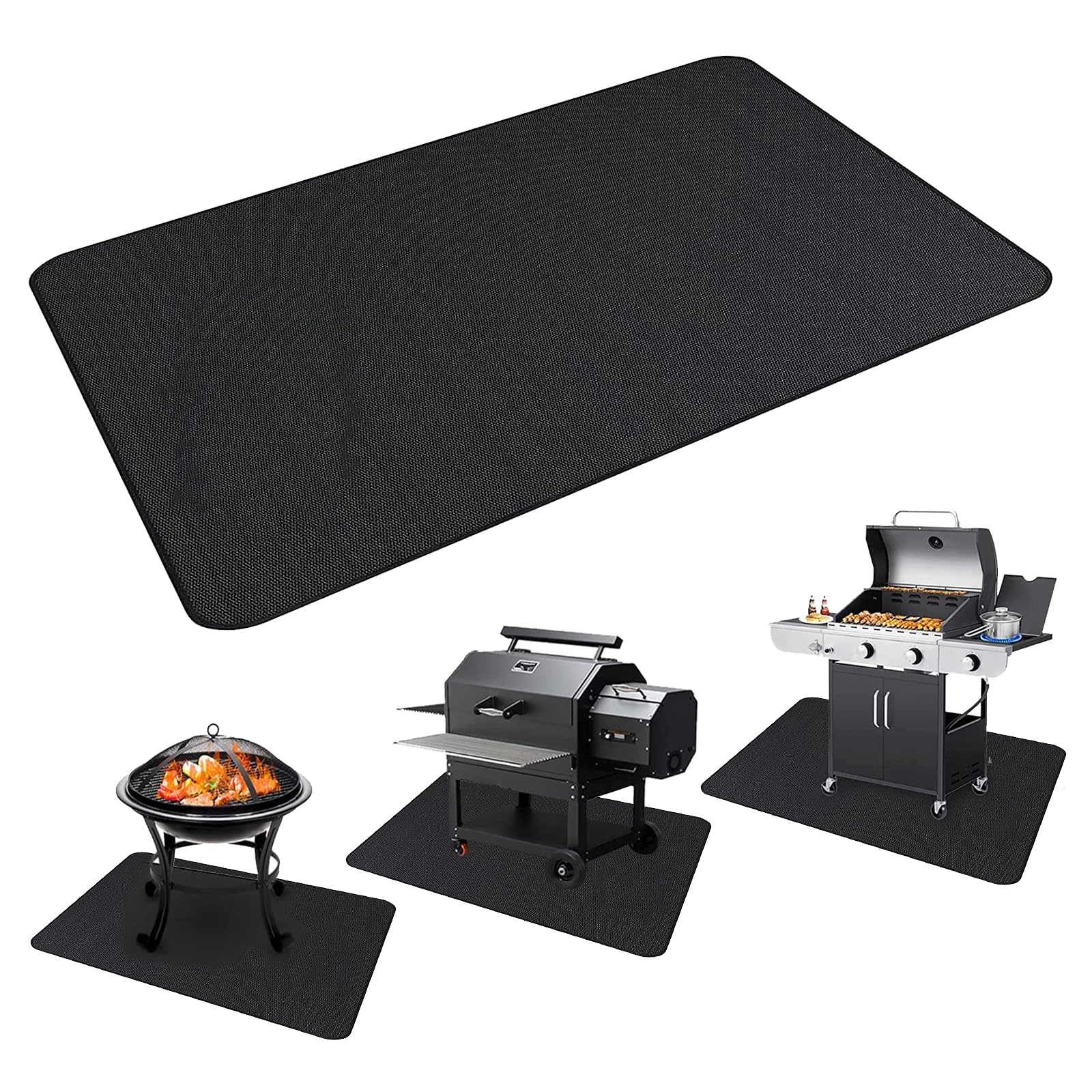 The mat’s size is 48*65 inches, which can protect the area below the fireplace from bursting embers or fire. It keeps the environment hygienic and tidy after an outdoor barbecue, reducing the cleaning burden and allowing you to fully enjoy the outdoors. We use more advanced fire-resistant materials for this grill mat. It is made of fiberglass and can provide heat resistance up to 2000 degrees Fahrenheit. The mat also has a double-sided high-temperature resistant silicone coating, making it fireproof, waterproof, and resistant to oil. Compared to traditional rugs, our heat resistant mats have finely stitched edges and will not stick, tear, curl or crack from heat. The grill mats under the outdoor grill are designed to be waterproof. You can easily rinse them with soap and water or a garden hose, and you can quickly wipe them with a damp towel to make them look new and reusable. Additionally, the grill mats can be folded up for easy storage. A storage bag is delivered with the trim and patio protector.