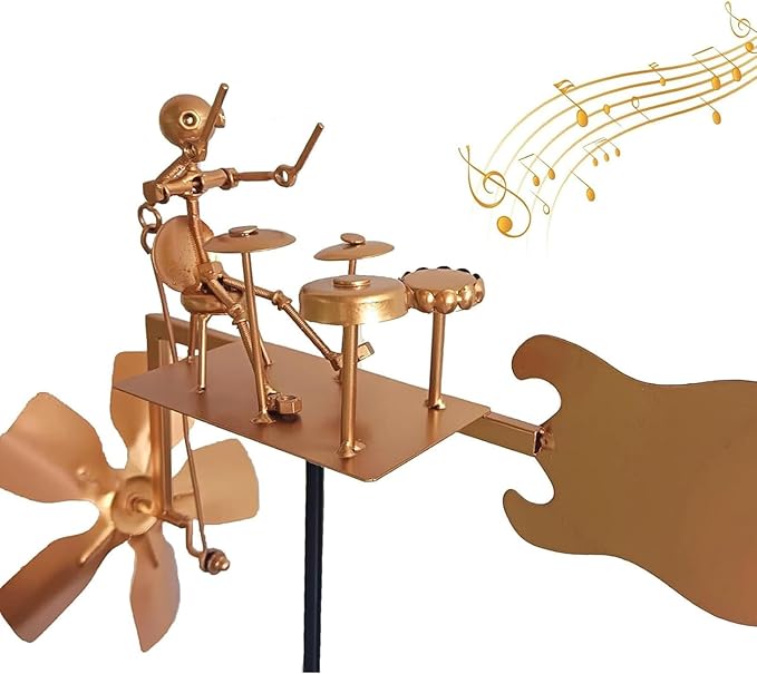 The drummer decoration comes alive when the wind drives the windmill to rotate, creating a rhythmic beat. The faster the wind, the faster the drum beats, creating a mesmerizing visual effect. Made of high-quality hand-welded, this durable drummer windmill is made of sturdy metal material to withstand outdoor environments while maintaining its decorative properties. The wind-powered kinetic sculpture is suitable for a variety of outdoor environments such as gardens, lawns, patios and courtyards, adding an artistic touch to any outdoor space. Handmade metal drummer windmill, perfect for musicians, music lovers and drummers. Perfect for Father’s Day, birthdays, retirement celebrations or as a special gift for music lovers’ collection.