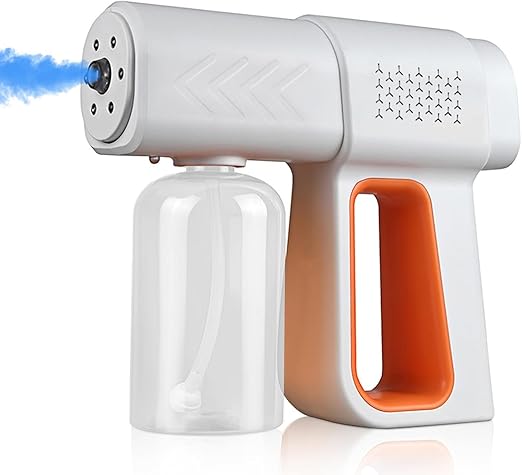 The sprayer is powerful enough to be used by cleaning professionals yet easy enough to be used by small business owners and homeowners who want to clean their own spaces. The Battery-Powered feature allows you to use the sprayer without having to drag a cord around. Equipped with a 380ml large-capacity water bottle, the new model features a clear and transparent white bottle, allowing you to easily monitor the liquid level and produce superfine atomized particles. Suitable for most liquids. This sprayer is highly portable and can be used anywhere, anytime. Please note: You may receive either a white bottle (new model) or an orange bottle. Both colors of the product are identical in function and quality, differing only in color. Featuring a completely new nozzle design and corrosion-resistant materials, this atomizer ensures an even and effective misting effect. With a one-button operation, it offers adjustable fog settings, allowing you to control the mist intensity for optimal disinfection performance.