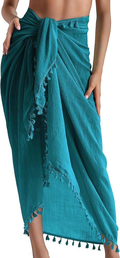 This fashionable sarongs for the beach is colourful and versatile, perfectly showcasing a woman’s figure. It can be used as a bathing suit cover up, cover up skirt, swimsuit cover up, swimwear covers, beach cover and more. The sarong cover up has a comfortable touch, which is skin friendly, breathable, smooth, lightweight, convenient to wear, and easy to store. It is an ideal choice for beach, vacation or travel. The sarong cover up adopts tassels, which is unique, fashionable and luxurious. You can freely create new shapes or versatile beach skirts, making you more youthful and charming, making it nice to match with any fashion top for the beach or swimming pool.
